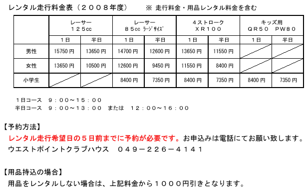 ウエストポイントのレンタル走行はバイクやウエアが無くても参加していただけるサービスです。